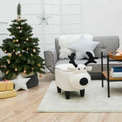 DUNEDESIGN Tabouret Renne Avec Rangement – 57x31x55 Pouf De Forme Animale Chaise Enfant – Beige