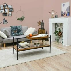 DUNEDESIGN Table Basse Industrielle Avec Plateau En Bois 90x44x50 Table Café Rectangulaire – Braun