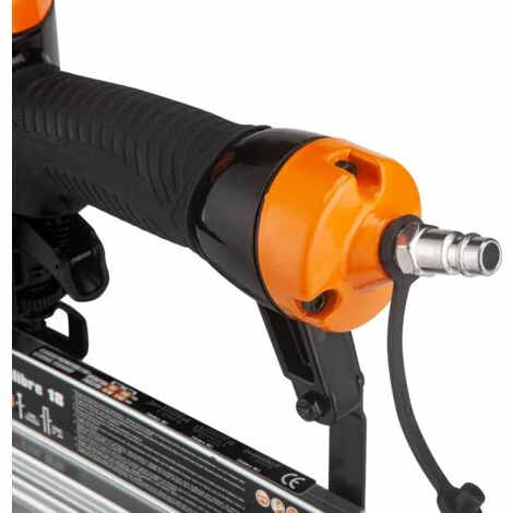 Compatible avec les clous de finition de calibre 18 Ga de 3/8 à 2 » , 16GA ou agrafe La poignée confortable réduit la fatigue tout en augmentant le contrôle et la précision Réglable à 360 degrés permet à l’utilisateur de diriger l’air loin du visage et des débris